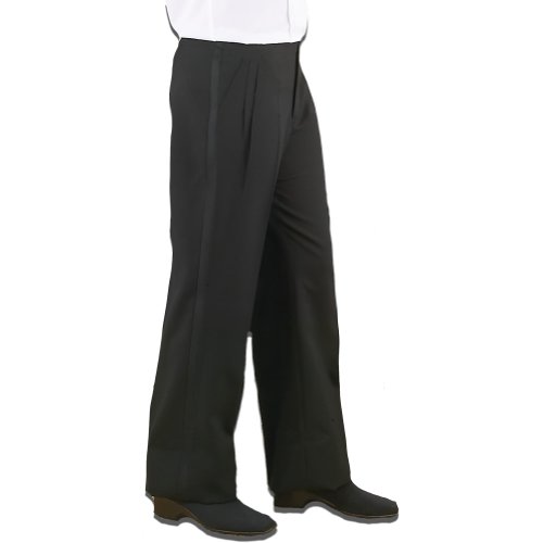 The Neil Allyn ladies black 100% polyester trouser is a perfect fit for any server, bartender, wait staff or caterer. The pant is detailed with a pleated front, satin tuxedo striping down the side and is traditionally sized. These pants have a tailor-ready unfinished bottom hem.You will not be disappointed with Neil Allyn Black pleated front tuxedo stripe trouser for women